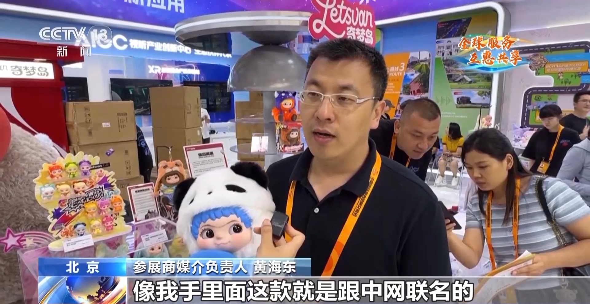 *參展商媒介負責人 黃海東:*我們第一次參加服貿會,帶來了旗下最火的大概15種原創IP,我手裏面這款就是9月14日首發的中國網球公開賽的吉祥物,也是這次在服貿會上做了首次展示。大家可以看到我們的貨架全都空了,銷售確實很火爆。