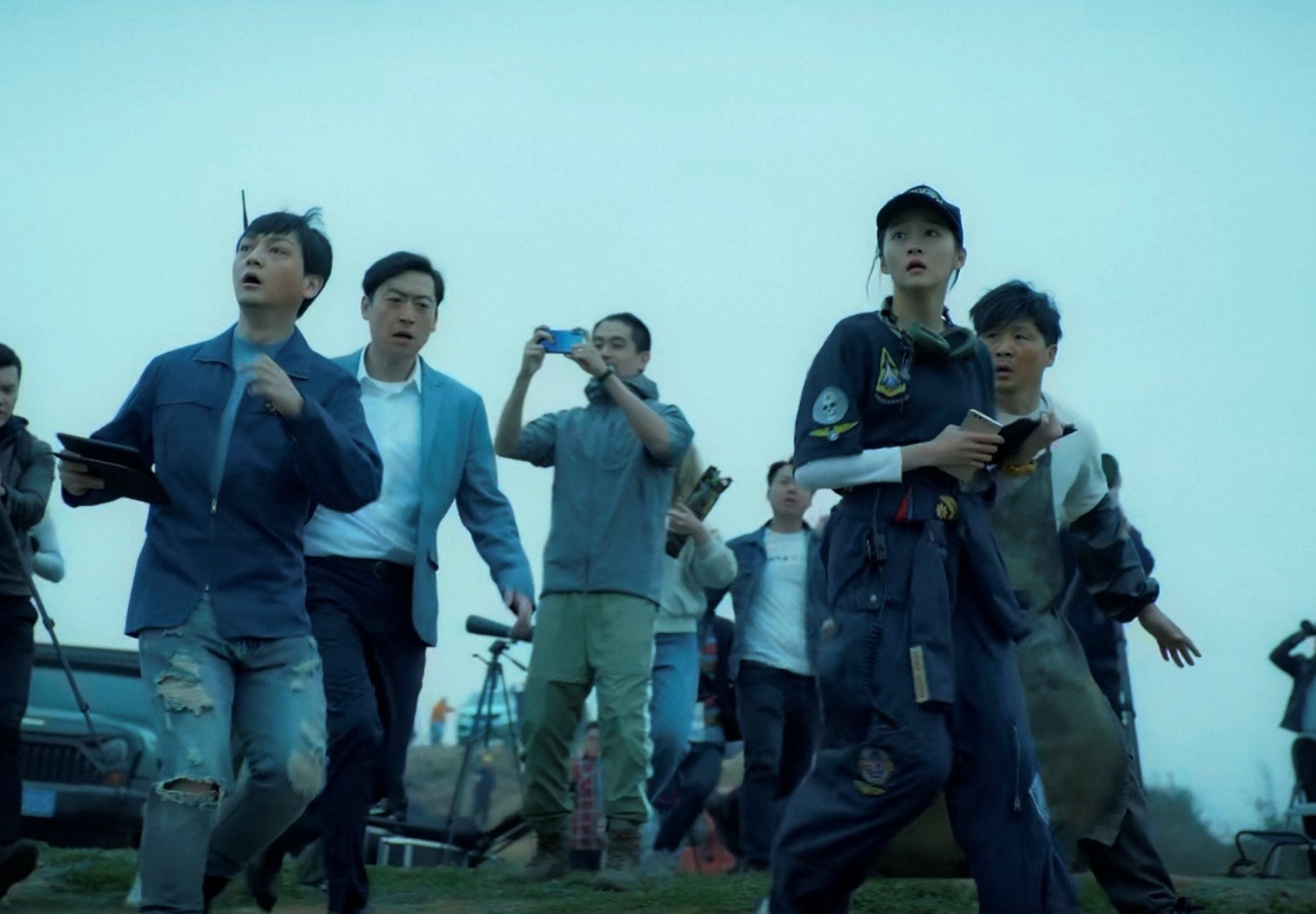 電影中有這樣一個場景:當四川8633航班降落時,有一羣人站在雙流機場不遠的山坡上,他們表情緊張,屏息以待。這一幕正是在成都雙流區空港花田取景拍攝。
