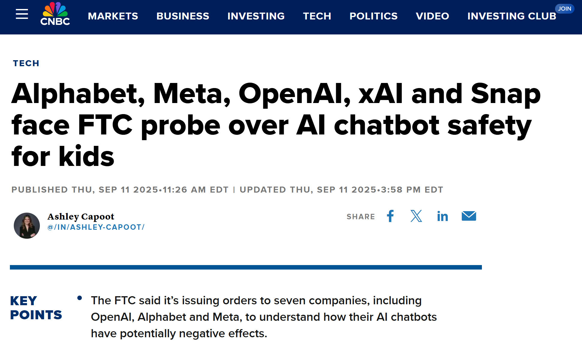 美國FTC要求七家AI巨頭説明青少年安全保障措施