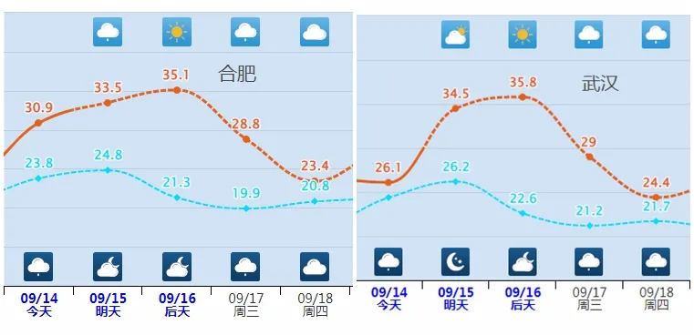 在冷空氣到來前,江南、華南等地“秋老虎”在線,明後天高温範圍較廣,長江中下游地區高温也將短暫增多。隨着冷空氣南下,長江沿線多地18日至19日最高氣温也將降至25℃左右,像合肥、武漢最高氣温只有25℃上下。