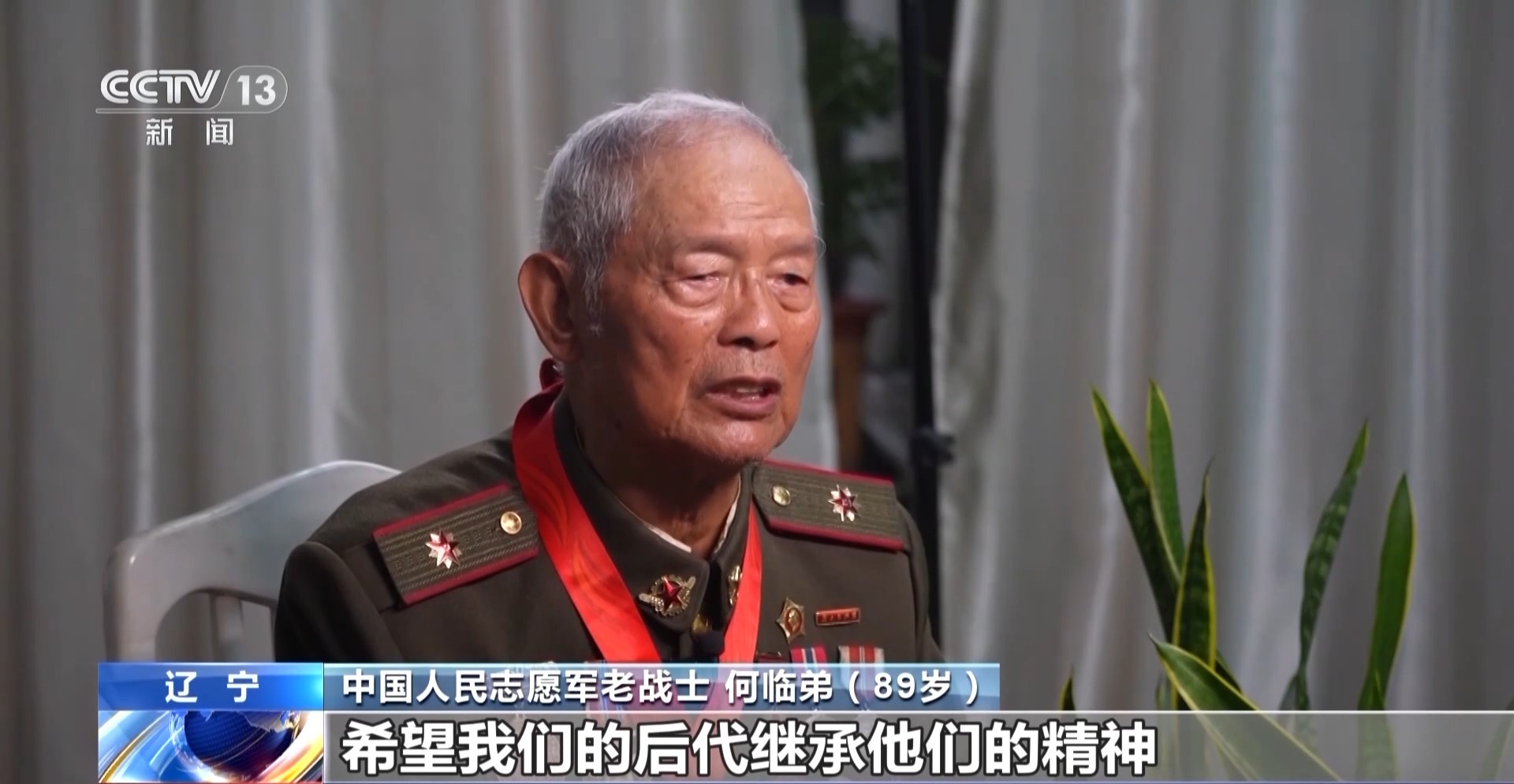 *中國人民志願軍老戰士何臨弟:*因為我那時候發高燒,文工團的同志就揹着我到演出那裏去,演完後,他又把我揹回來了。第二次我們去慰問演出,結果他們文工團的告訴我,説那個同志犧牲了。起碼背了有一里多地,所以想着就是,心裏忘不了,一直忘不了這件事情。我要是能回國的話,為他父母盡孝,為他父母養老送終,這就是我的想法,但是後來我不知道他的姓名,也不知道他的家在哪裏住,這個就一直在我心裏惦記着。今天戰友們回到祖國母親的懷抱,是他們用鮮血和生命保衞了我們國家,這是我們永遠不能忘記的事情,希望我們的後代繼承他們的精神。