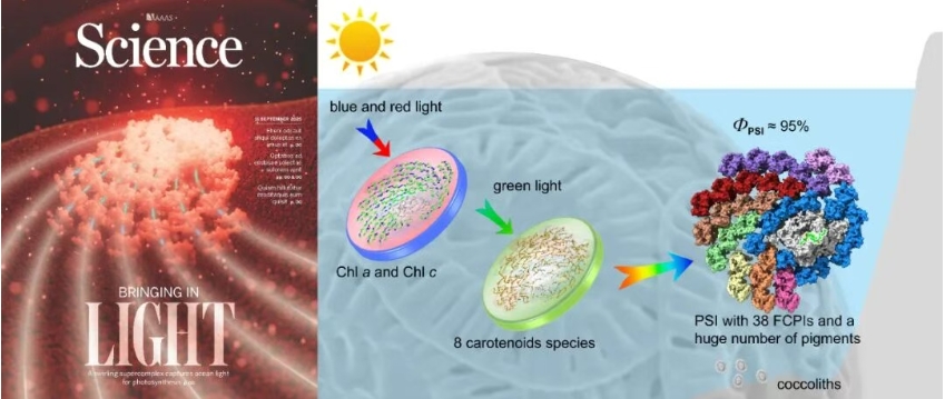 【環球網科技綜合報道】9月14日消息,中國科學院植物研究所宣佈,中國科學院植物研究所王文達研究員和田利金研究員帶領團隊首次純化並解析了來自赫氏艾米里顆石藻的光系統I-巖藻黃素葉綠素a/c結合蛋白(PSI-FCPI)超級複合物三維結構,這一研究首次在原子層面揭示了顆石藻通過擴展和優化其光系統結構來適應海洋光環境的獨特策略,是光合生物適應進化研究中的一個重大發現。