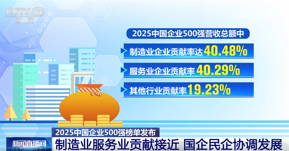 榜單數據顯示,2025中國企業500強營收總額中,製造業企業貢獻率達40.48%,服務業企業貢獻率40.29%,其他行業企業貢獻率19.23%,形成三大產業協同發展的良好態勢。專家指出,這種”四四二”的貢獻結構表明我國經濟轉型升級取得實質性進展,現代產業體系建設邁出新步伐。