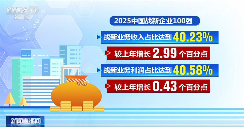 戰新業務佔比再上新台階。2025中國戰新企業100強戰新業務收入和利潤佔比雙雙超過40%,分別達到40.23%和40.58%,較上年增長2.99、0.43個百分點。