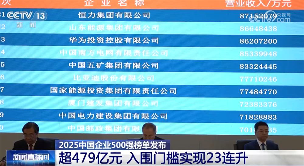 央視網消息: 15日,中國企業聯合會發佈了“2025中國企業500強”榜單。這是中國企聯連續第24次向社會發布這一榜單。它就像是中國經濟的“晴雨表”,記者也梳理了榜單中的亮點,一起來了解。