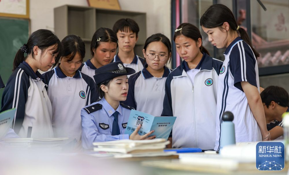 9月15日,民警在貴州省銅仁市玉屏侗族自治縣黔東民族寄宿制中學給學生普及網絡安全知識。新華社發(胡攀學攝)