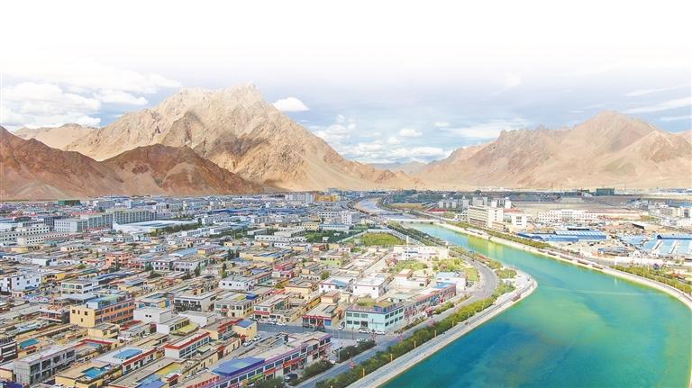 圖為綠意環繞的獅泉河鎮。 記者 洛桑旦增 達珍 永青 攝
