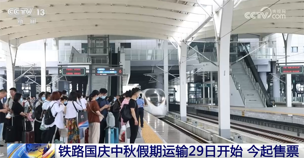 *央視網消息:*記者9月15日從國鐵集團獲悉,鐵路國慶、中秋假期運輸將從9月29日開始。按照提前15天預售的規定,車票15日起開始發售。