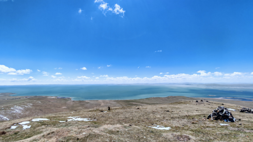 圖為8月份,本報記者前往扎陵湖,尕日塘刻石在畫面偏左靠近湖邊200米處。