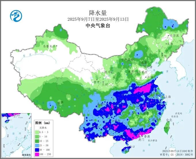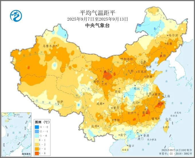 上週(2025年9月7日至9月13日),全國大部農區氣温接近常年同期或偏高1至2℃,其中新疆西部和中部、西北地區東北部、內蒙古中西部、東北地區中南部、華北、江淮南部、江南等地偏高2至4℃。