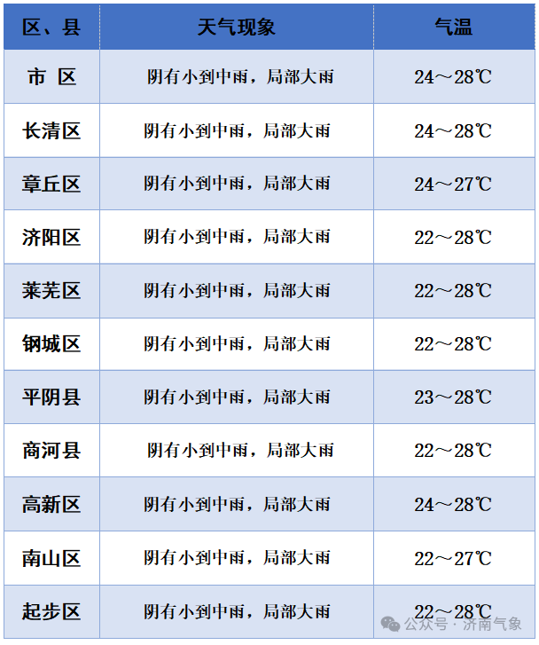 陰有中雨,平陰、南山、萊蕪、鋼城局部地區有暴雨,伴有雷電,降水概率70%,17日下午轉多雲,北風4級陣風6~7級減弱到3級,雷雨時陣風7~8級,最低氣温市區18℃左右,其他區縣16~18℃,最高氣温23℃左右。