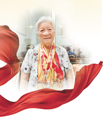 《鋼鐵洪流進行曲》在客廳裏迴盪,戰旗方隊駛過天安門廣場。馮瑞梅睜大眼睛找着,得知瓊崖縱隊也有一面戰旗受閲,她欣慰地拍了拍胸脯。