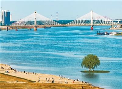 淮河干流蚌埠主城區段的金沙灘獨樹島景點。
