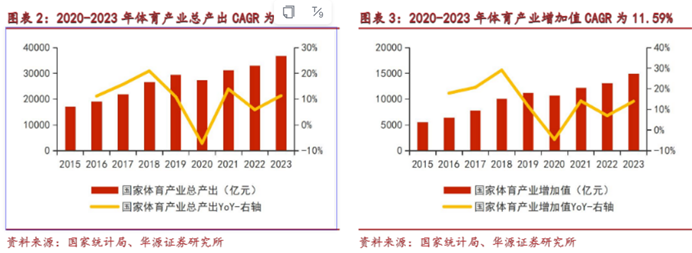 華源證券近日發佈研報分析指出,我國體育產業總產出增速在經歷2020年的短暫調整後迅速回升,2023年總產出達到3.67萬億元、同比增長11.31%,並正向《“十四五”體育發展規劃》提出的2025年5萬億元目標邁進;