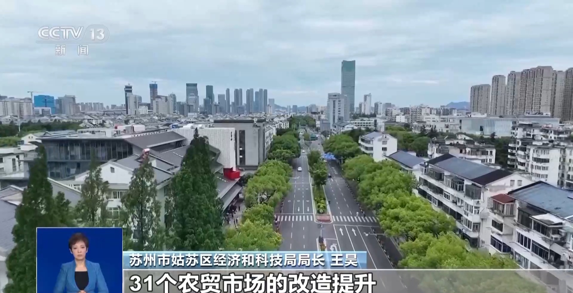 *蘇州市姑蘇區經濟和科技局局長 王昊:*目前姑蘇區已經累計完成了31個農貿市場的改造提升,接下來我們將引入蘇繡、核雕等非遺體驗,讓市民遊客在這裏吃早點、買菜,還能夠感受蘇工蘇作的匠心巧思,觸摸蘇州的文化根脈。