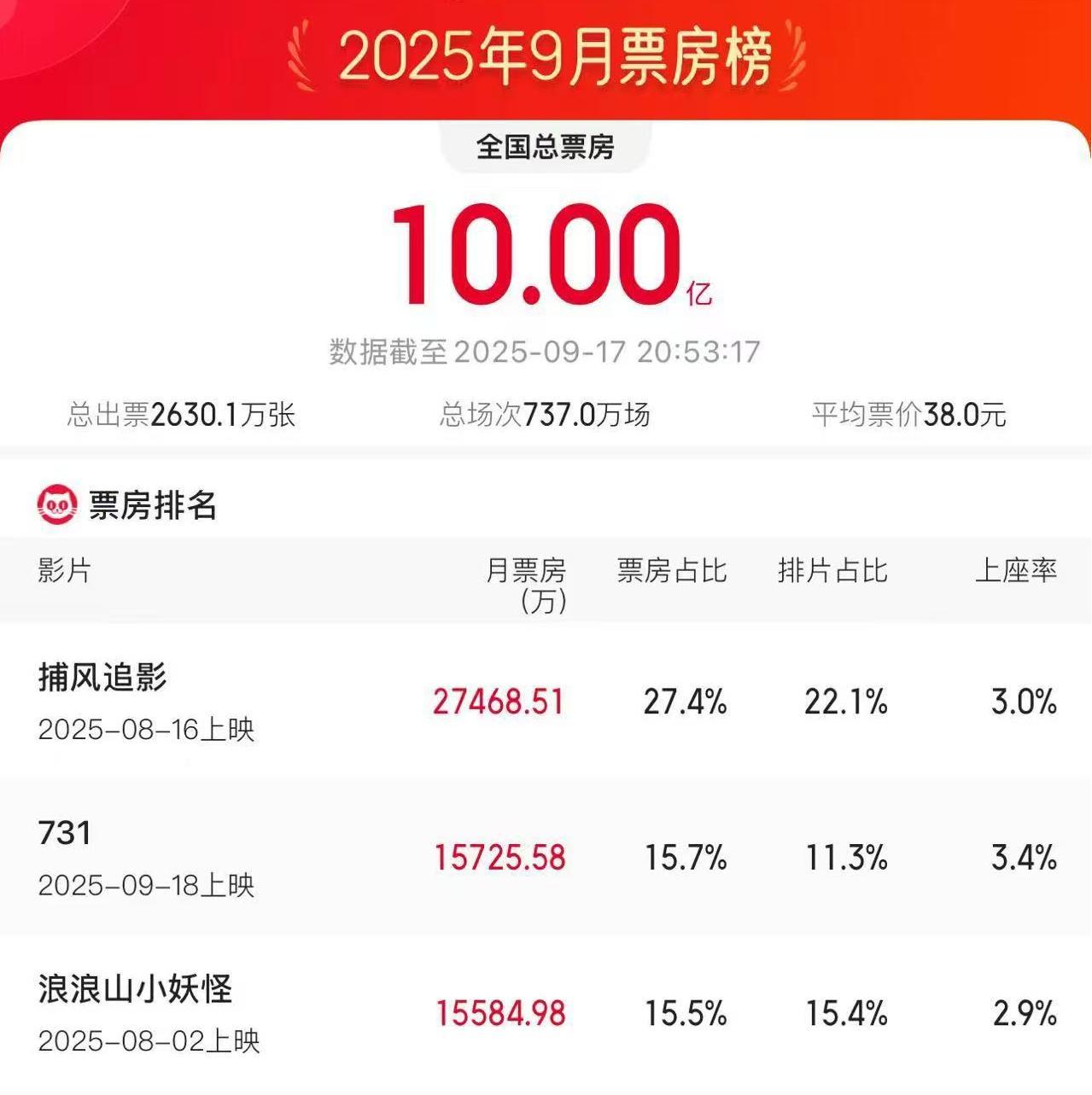 截至今日21時,電影《浪浪山小妖怪》累計票房(含預售)達16.11億,單9月票房超1.55億。《浪浪山小妖怪》自上映以來,憑藉極具中式美學的畫面和對傳統故事再創造,收穫眾多觀眾喜愛,不僅成為國產二維動畫電影票房冠軍,而且暫列中國影史動畫電影票房榜前五。