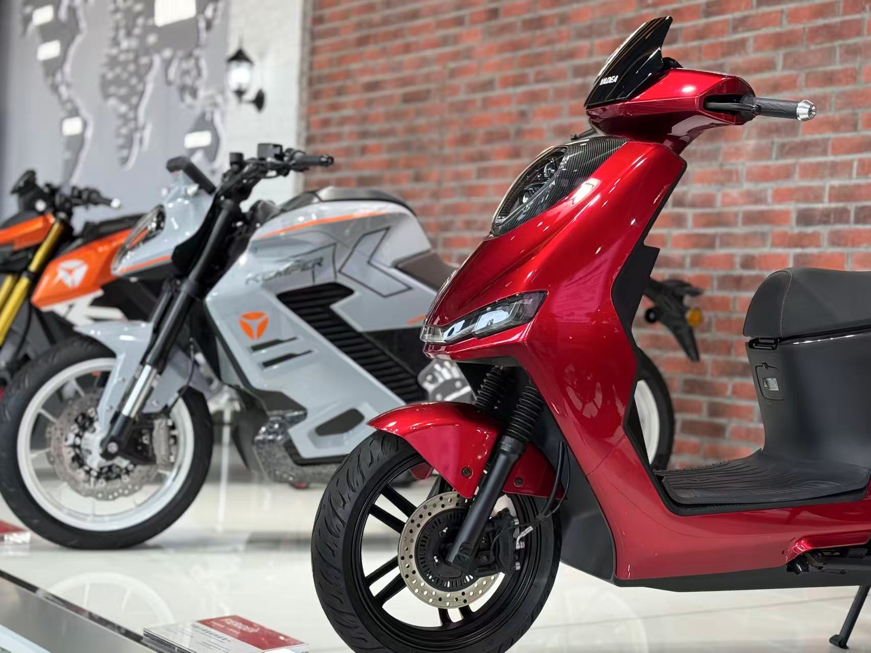 在雅迪展廳,款式多樣、性能不同的多個系列產品叫人眼花繚亂,按需“花式”創研的成果具象化了——歐洲人身形高大、對速度要求高,性能強、有快充的跨騎式就很“搭”;東南亞國家城市通勤、家庭出行場景多,低速、加長座椅的踏板車就很“配”,好比是一輛兩輪“SUV”。
