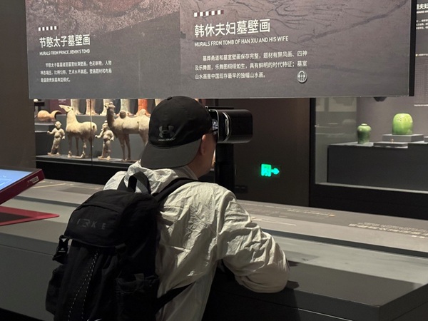 觀眾通過VR眼鏡觀看壁畫。孔繁鑫 攝