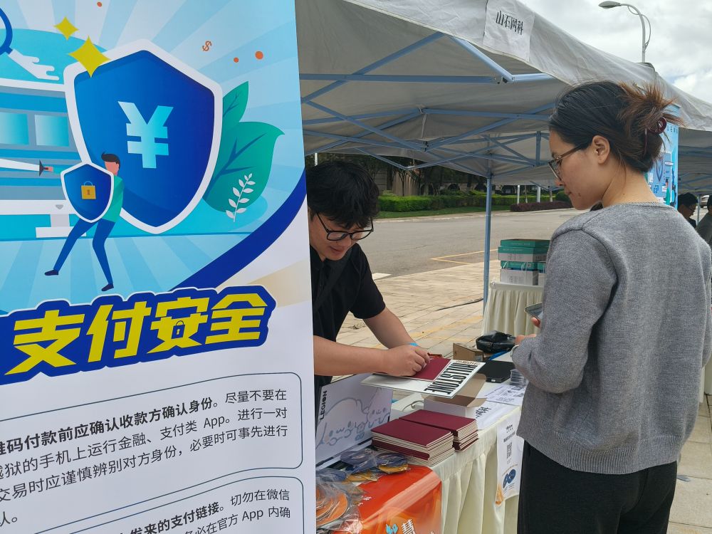 校園的露天廣場上還安排有網絡安全知識趣味問答活動,吸引學生參與,讓他們在輕鬆愉快的氛圍中鞏固了反詐知識。還有工作人員向路過的學生髮放反詐宣傳手冊。
