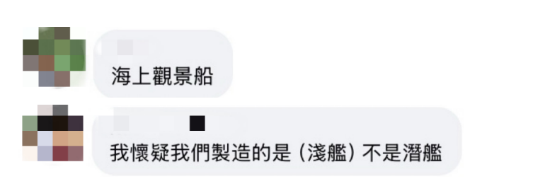 有網友稱呼“海鯤”號為“海上觀景船”,“我懷疑我們製造的是‘淺艇’不是‘潛艇’”。↓
