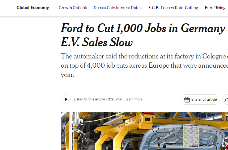 公開資料顯示,此次裁員並非孤立事件。去年,福特就已宣佈,作為更廣泛重組計劃的一部分,到2027年底將在歐洲裁員4000人,涉及德國和英國的工廠。而此次科隆工廠的裁員,無疑是在原有計劃基礎上的一次“加碼”。