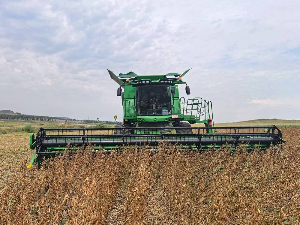 “今年合作社共種植7萬畝作物,其中玉米3萬畝、大豆4萬畝。自14日起大豆收穫工作已啓動,16日開始收割玉米,秋收比往年提前了約半個月。”合作社理事長單慶東笑着説,今年積温偏高,作物成熟時間提前,整體長勢好於往年。