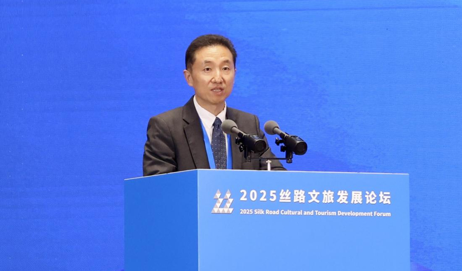 清華大學新聞與傳播學院教授、文化創意發展研究院院長鬍鈺在2025絲路文旅發展論壇上作主旨發言。蔣雨師攝