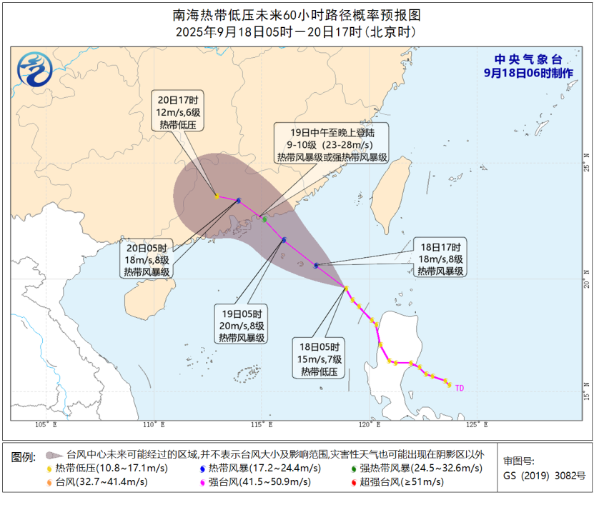 中央氣象台9月18日06時繼續發佈熱帶低壓預報*:*