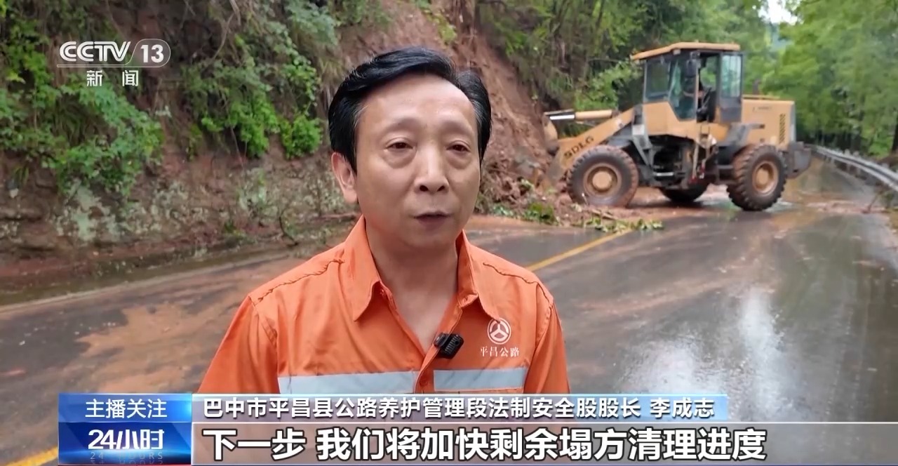 *巴中市平昌縣公路養護管理段法制安全股股長 李成志:*下一步,我們將加快剩餘塌方清理進度,密切留意天氣變化,加大道路巡查頻次,隨時應對可能的新險情,全力保障全縣道路安全暢通。