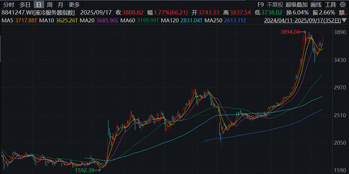 值得關注的是,今年以來液冷板塊持續走強,成為資本市場的熱門賽道。根據Wind數據,截至9月17日收盤,液冷服務器指數(8841247.WI)年內漲幅已達55.49%,板塊中淳中科技、大元泵業、英維克、川潤股份等多股漲幅超過一倍。