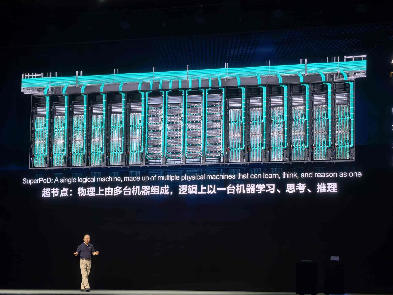 徐直軍説:“有了昇騰芯片為基礎,我們就能夠打造滿足客户需求的算力解決方案。從大型能源算力基礎設施建設的基礎方向看,超節點已經成為主導性產品形態,並正在成為AI基礎設施建設的新常態。”