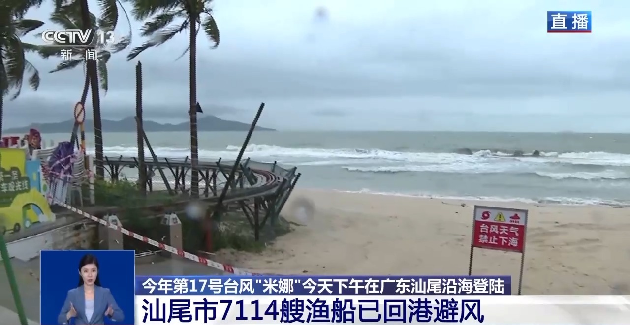 颱風“米娜”登陸廣東汕尾沿海 7114艘漁船已回港避風