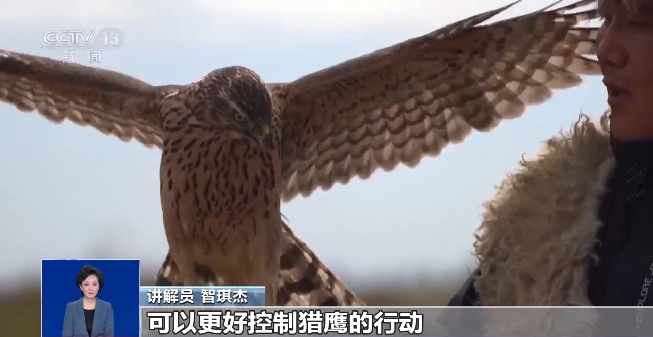 *講解員**智琪傑:*鷹尾鈴掛在鷹尾巴上,會發出叮叮噹噹的響聲,便於獵户知道它的去向。鷹絆繩是馴鷹專用繩,可以很好地控制獵鷹的行動。