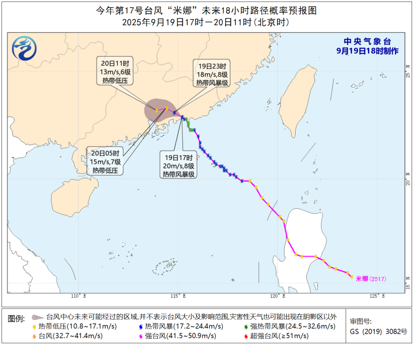 中央氣象台9月19日18時發佈颱風藍色預警*:*