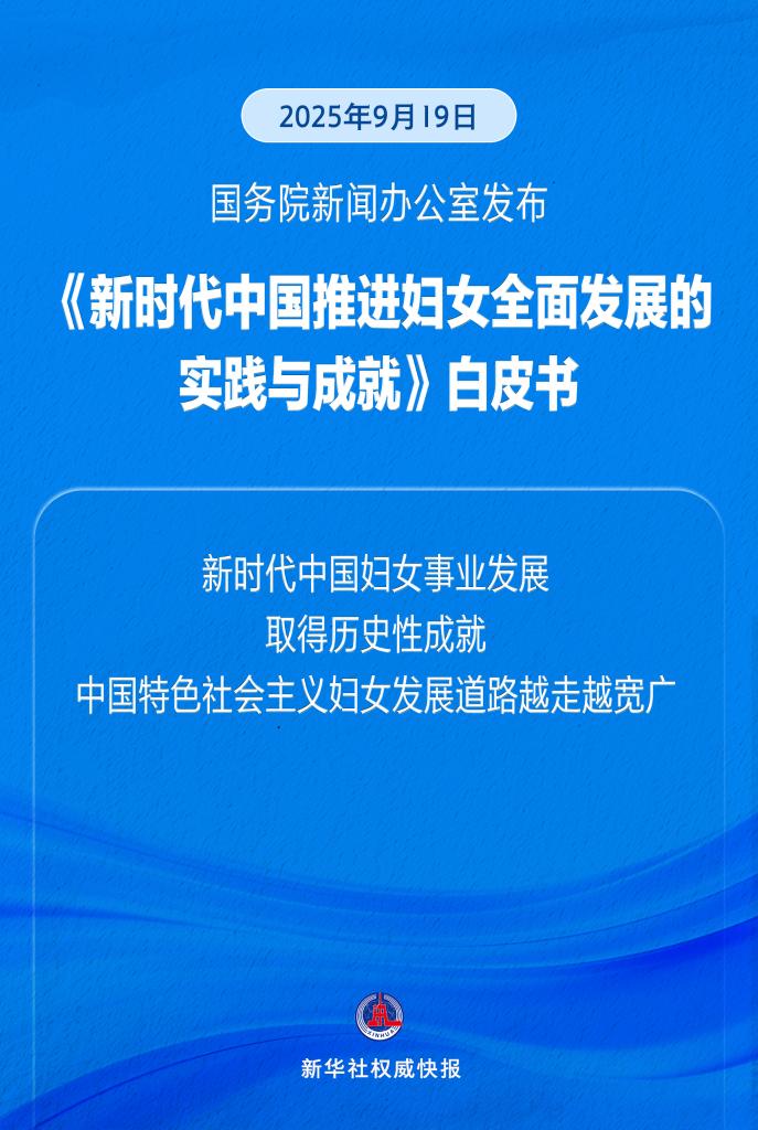 新華社北京9月19日電(記者董博婷、孫少龍)國務院新聞辦公室19日發佈《新時代中國推進婦女全面發展的實踐與成就》白皮書。