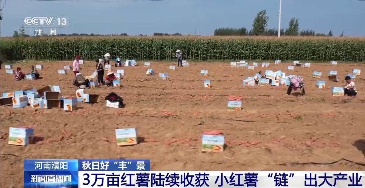 河南濮陽:3萬畝紅薯陸續收穫 小紅薯“鏈”出大產業