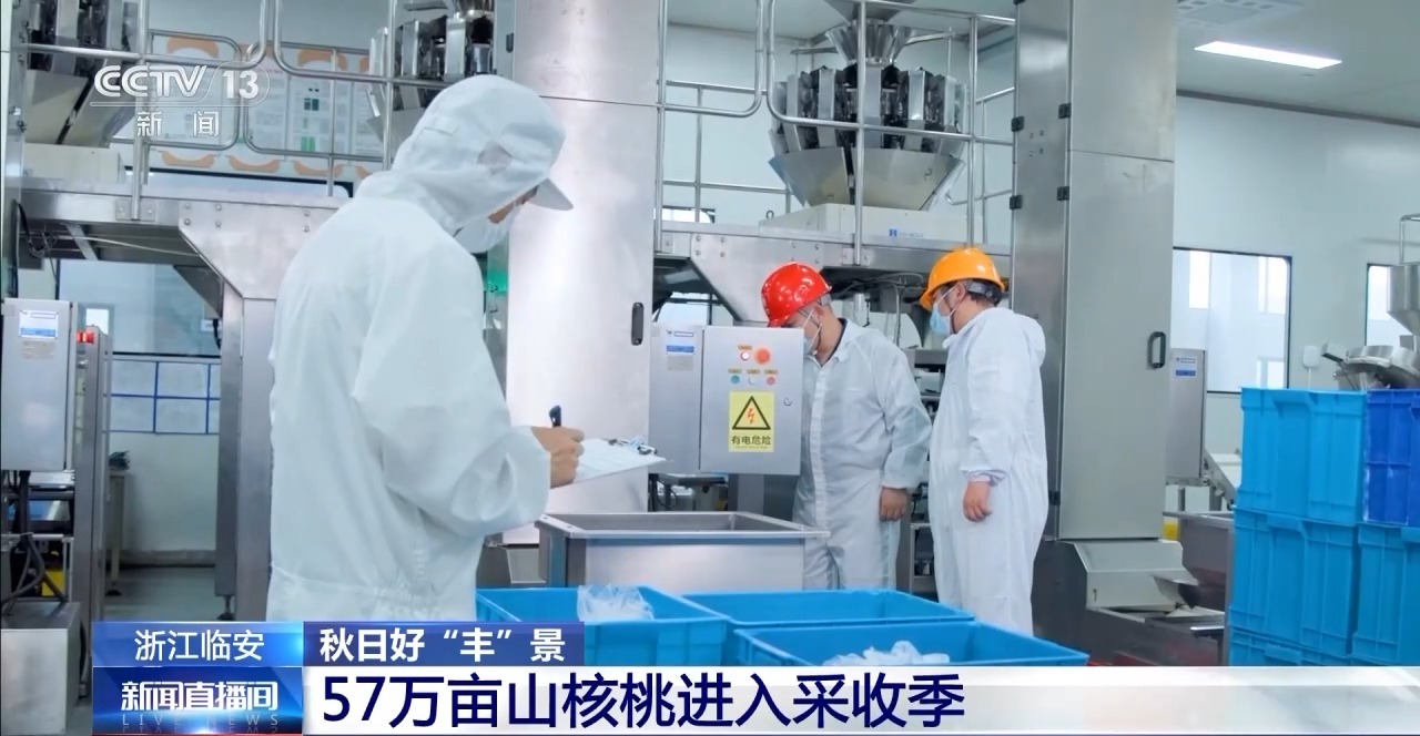 *某**山核桃加工企業負責人 鄧楊勇:*今年的山核桃是豐收年,產量比去年增長了50%以上,我們9月份上了很多新的山核桃烘乾設備,現在生產非常順利。