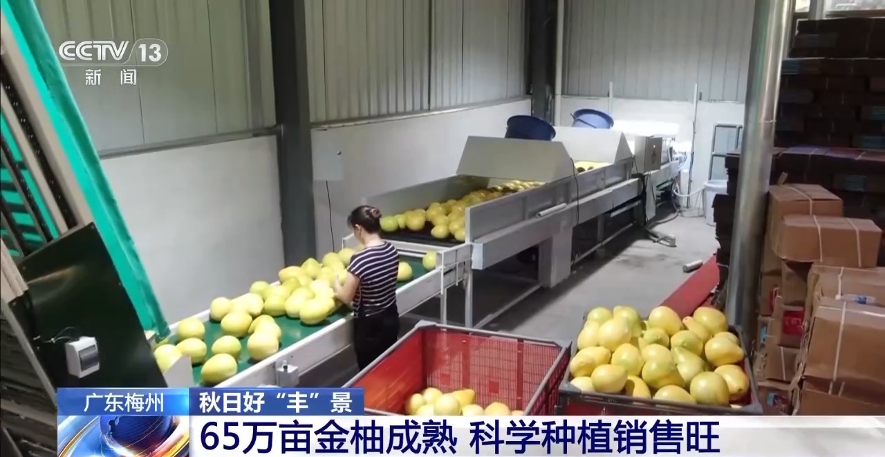 果農採摘忙,柚子加工企業也馬力全開。在位於鬆口鎮的梅縣金柚產業園內,工人們正在對收購上來的柚子進行無損糖度檢測,一個個柚子通過生產線自動進行分類,根據不同的糖度進行包裝銷售。