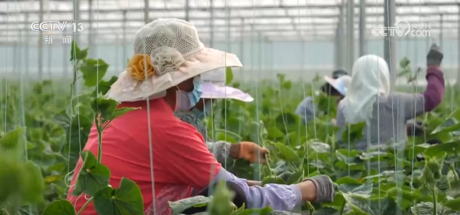 在山東濱州市惠民縣淄角鎮的千畝黃瓜種植基地,種植户正忙着採摘新一茬的黃瓜。為了引導農户進入基地建設的現代化設施大棚種植黃瓜,當地從改變傳統小地塊分散種植模式入手,實施跨村聯建,整合2000多萬元各級涉農資金,流轉4個鄰近村土地近千畝,建起了黃瓜種植基地。