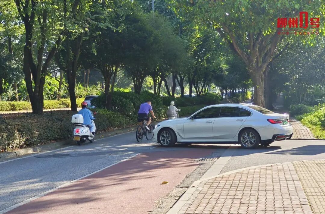 在攬山亭正門,機動車與非機動車同佔一道,險些發生碰撞。