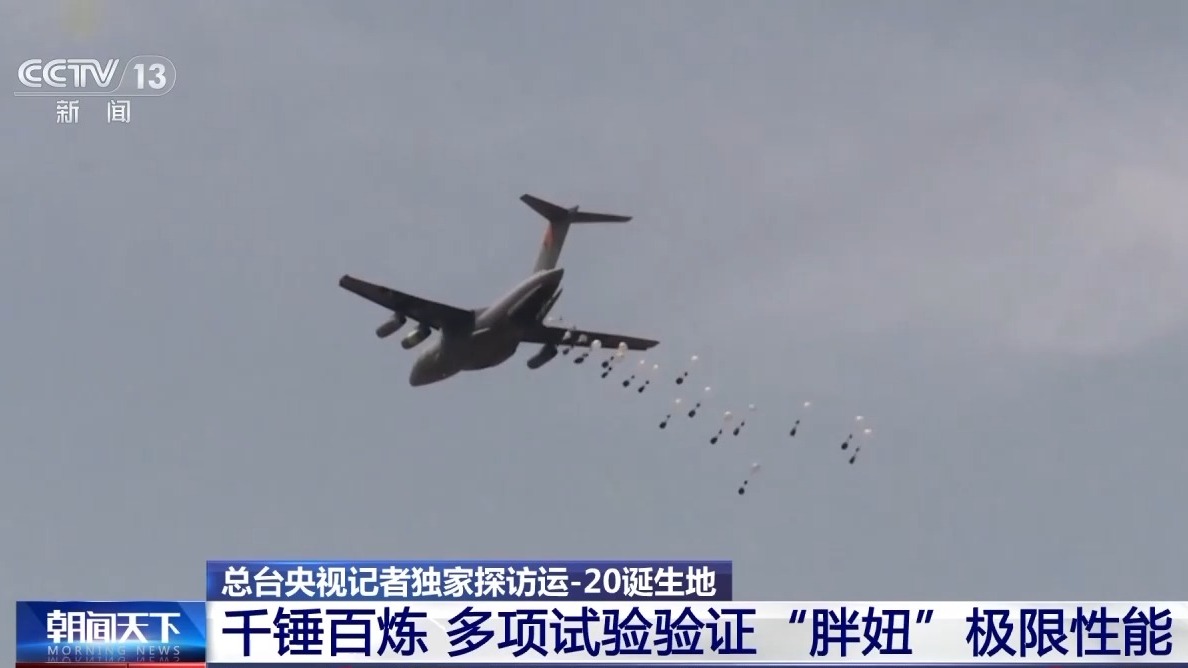 *總枱央視記者 李寧:*眼前的這架飛機就是我國的大型運輸機運-20。相信大家在過去很多場合都見到它的身影。正因為它特別大、特別胖,所以有一個非常響亮的外號叫“胖妞”。