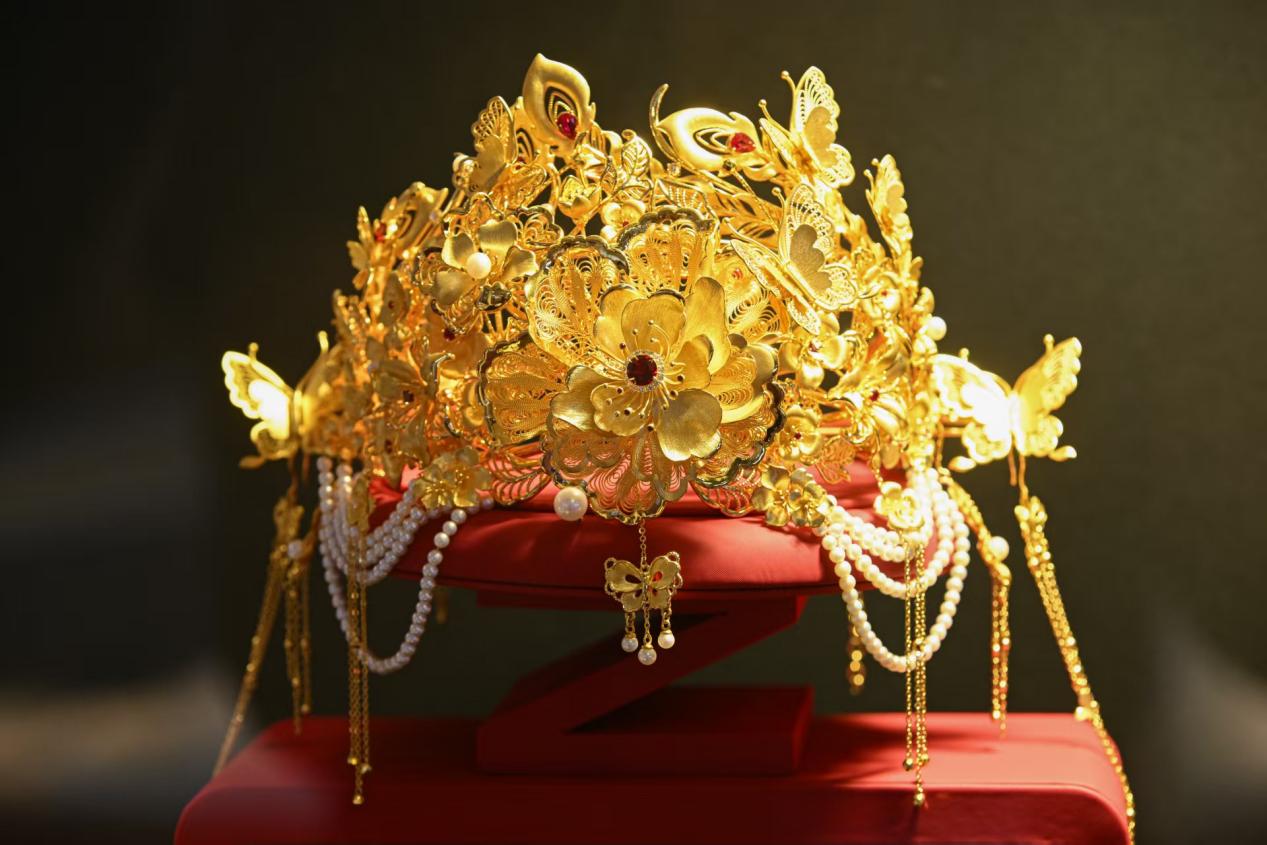 古董展區的買家們也是人氣較旺,且現場可以看到,買賣雙方進行長時間的商討與交談。來自中國浙江義烏萬物生古法珠寶的工作人員在接受環球網消費記者採訪時表示:“我們將古董珠寶的元素進行二創,比如帶來的鑽刻花絲系列的耳環,也有花開富貴的寓意;鏤空雕刻的蝴蝶,也是中國非遺的傳承;還有包玉的葫蘆作品,也有福祿平安寓意等等,很多很好的創作贏得消費者的喜愛。”