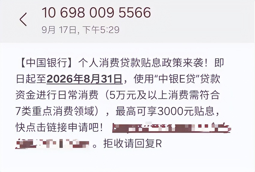 同時,銀行也加大了推廣力度,有消費者近期收到短信,例如中國銀行在營銷短信中表示,“使用‘中銀e貸’貸款資金進行日常消費(5萬元及以上消費需符合7類重點消費領域)最高可享3000元貼息。”