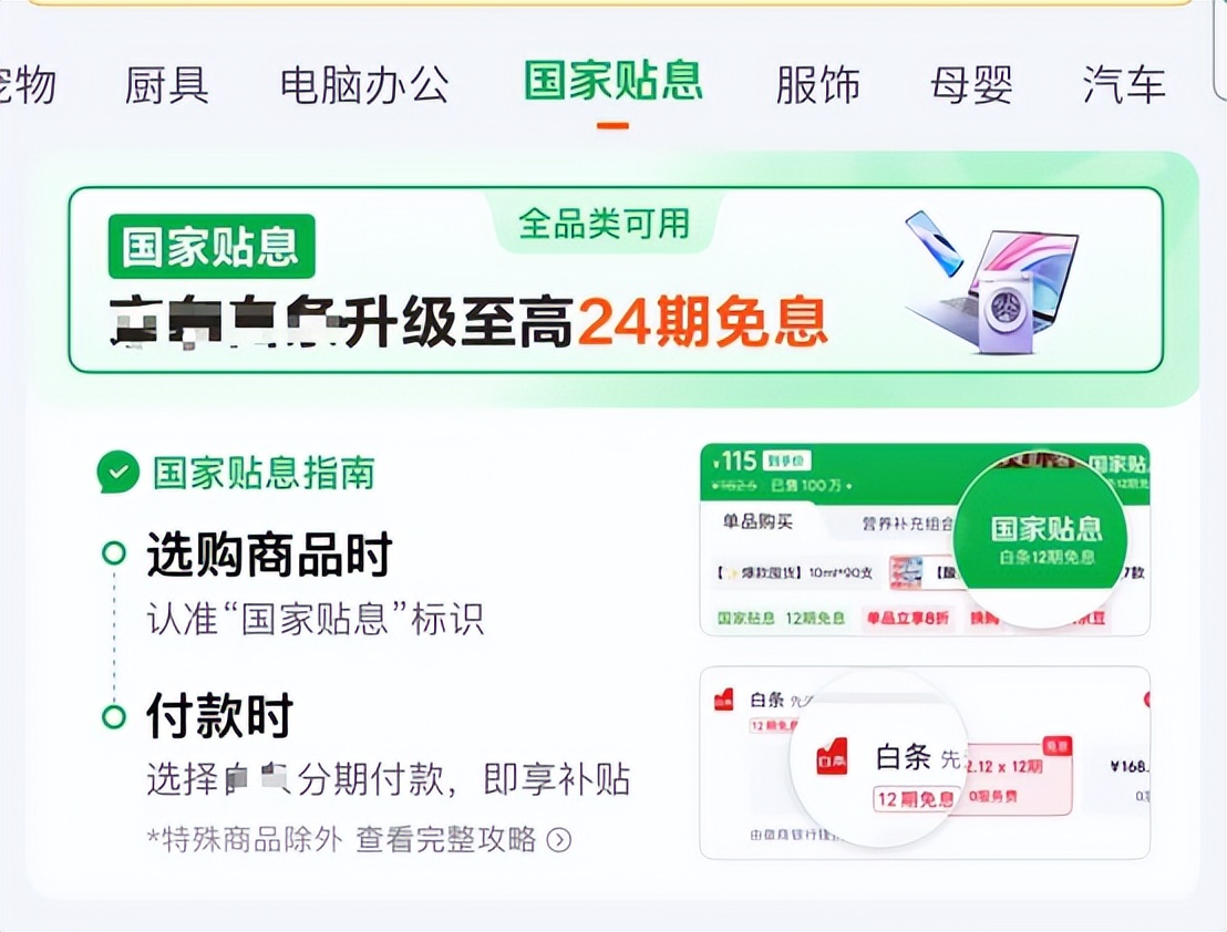 除了銀行和消費金融公司外,電商、金融科技平台也積極響應貼息。在線上消費渠道,支付寶花唄分期、京東金融等平台標註有“國家貼息”的標籤,用户可直接享受貼息。以支付寶花唄為例,適用貼息的分期付款交易,在貼息期間看到“國補貼息”或“銀行貼息”標籤,可通過花唄信用購分期付款直接享受貼息。