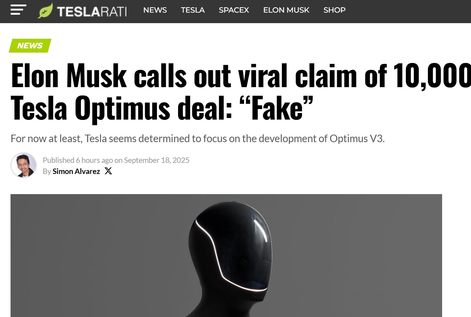 【環球網科技綜合報道】9月19日消息,據teslarati報道稱,埃隆·馬斯克在社交媒體平台X上發表聲明,澄清了關於“特斯拉Optimus機器人訂單”的不實報道。