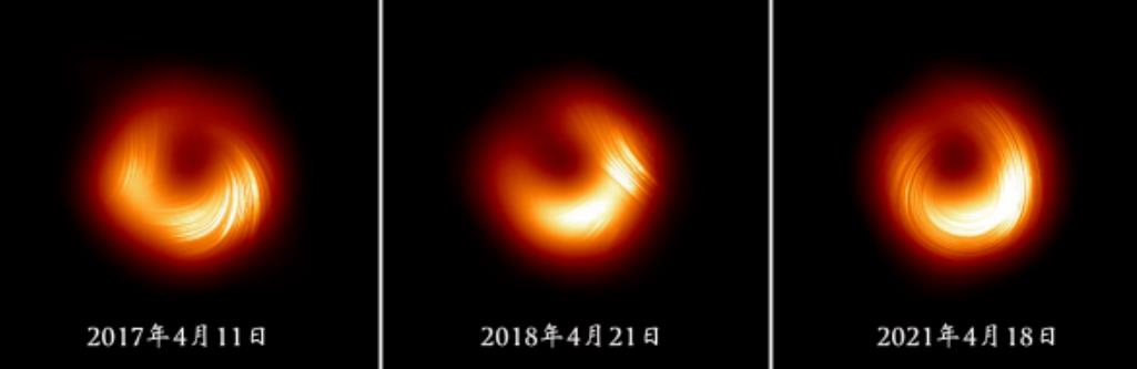 研究發現,2017年至2021年,偏振方向發生翻轉。2017年磁場呈一方向螺旋,2018年相對穩定,而2021年完全反轉。研究認為,這種偏振旋轉方向的明顯變化,或源於內部磁結構與外部效應的共同作用。偏振的演化反映出黑洞周圍的湍動不止的環境,而其中磁場在物質如何落入黑洞以及如何向外釋放能量方面發揮着關鍵作用。