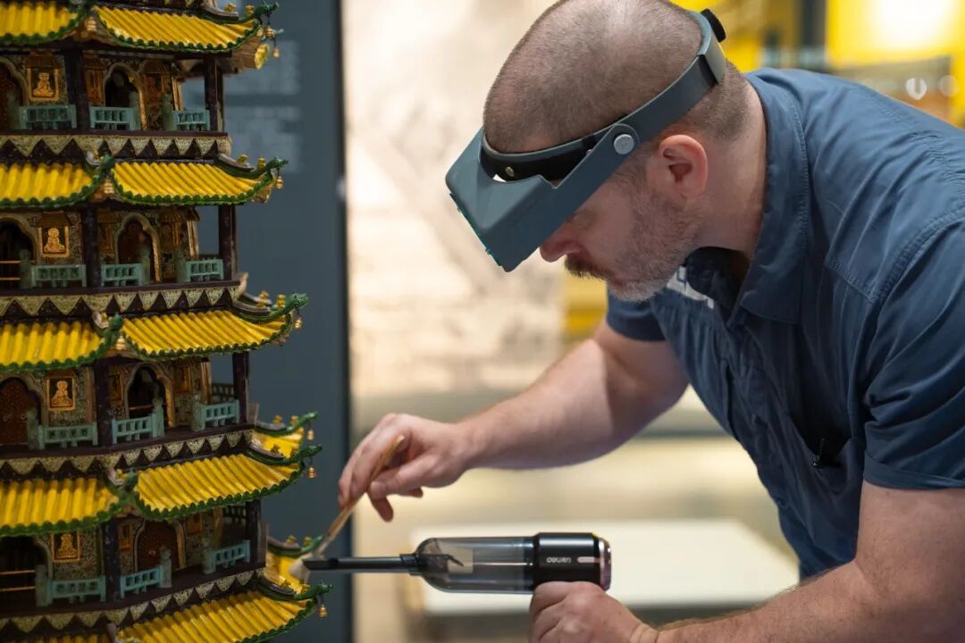 “這是我們以往與其他博物館合作時從未遇到過的事情,真的令人驚訝。”丹尼爾感慨,博物館用來放置寶塔模型的玻璃展櫃十分精美,整體空間內濕度和温度的控制設備也非常先進。