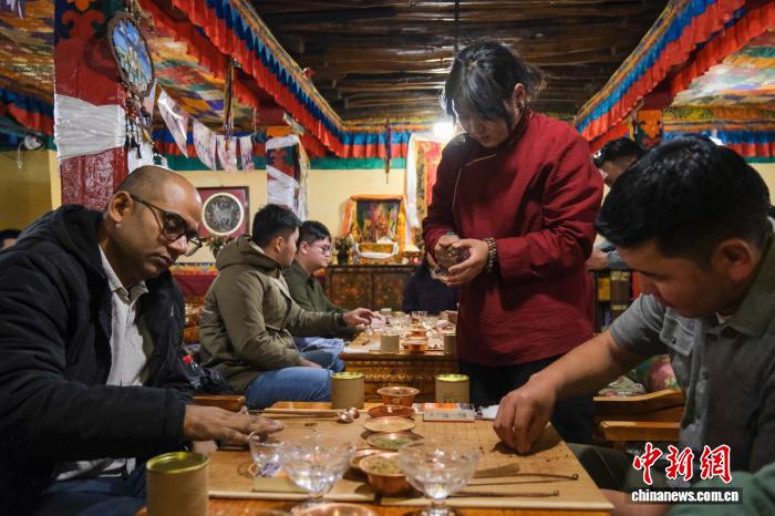 9月18日,多國媒體人員、公務人員在拉薩八廓街邦達倉古建大院體驗手工藏香製作。 中新社記者 江飛波 攝