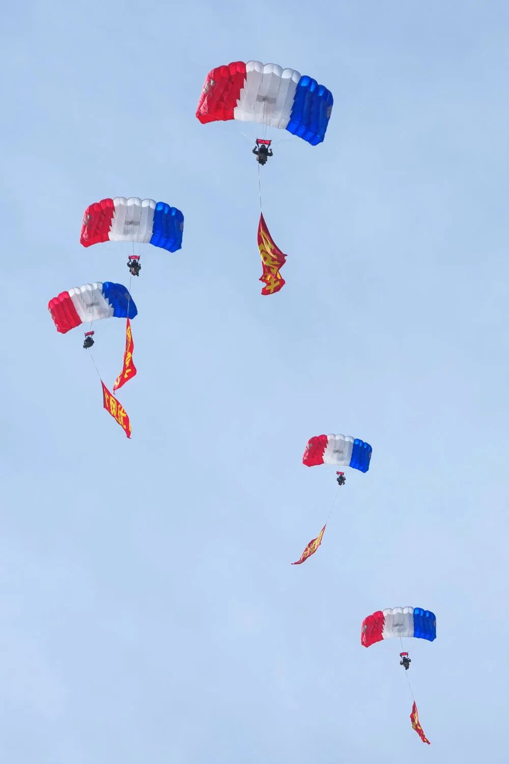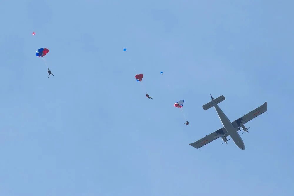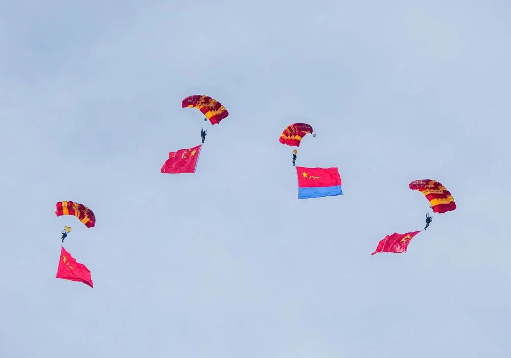 9月19日,空軍八一跳傘隊進行跳傘表演。新華社記者 顏麟藴 攝