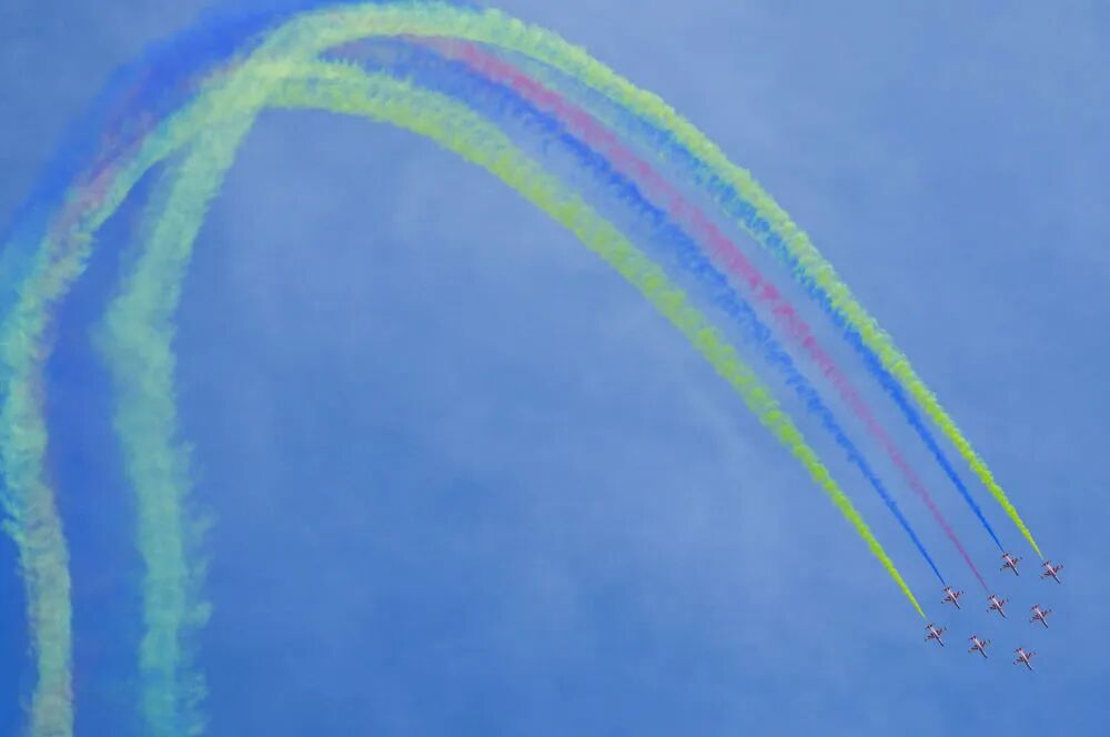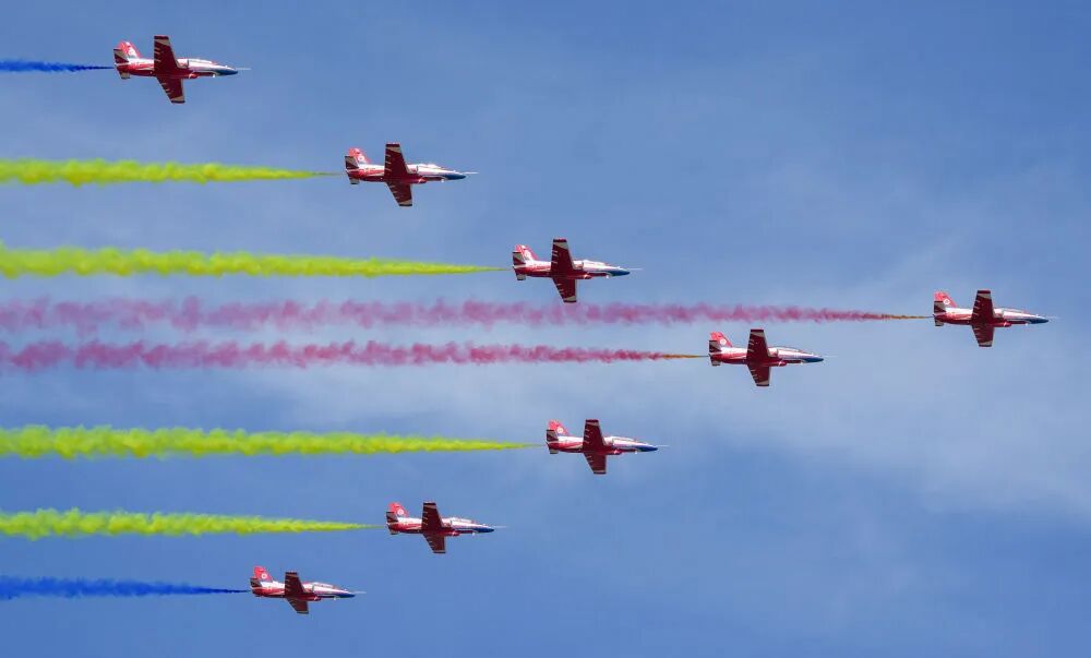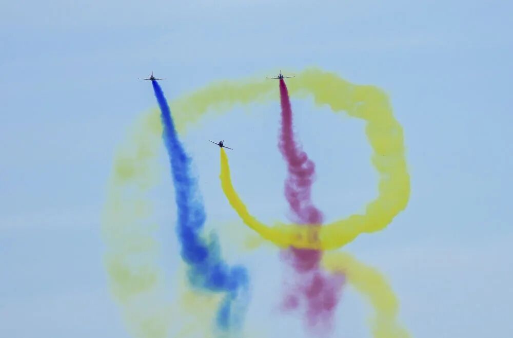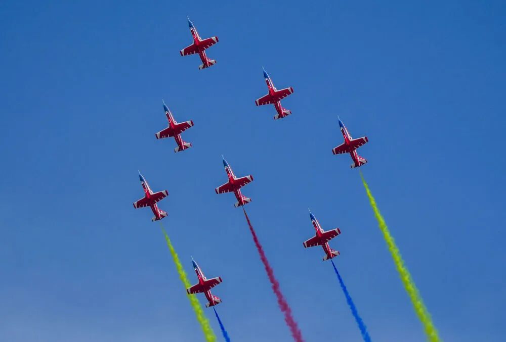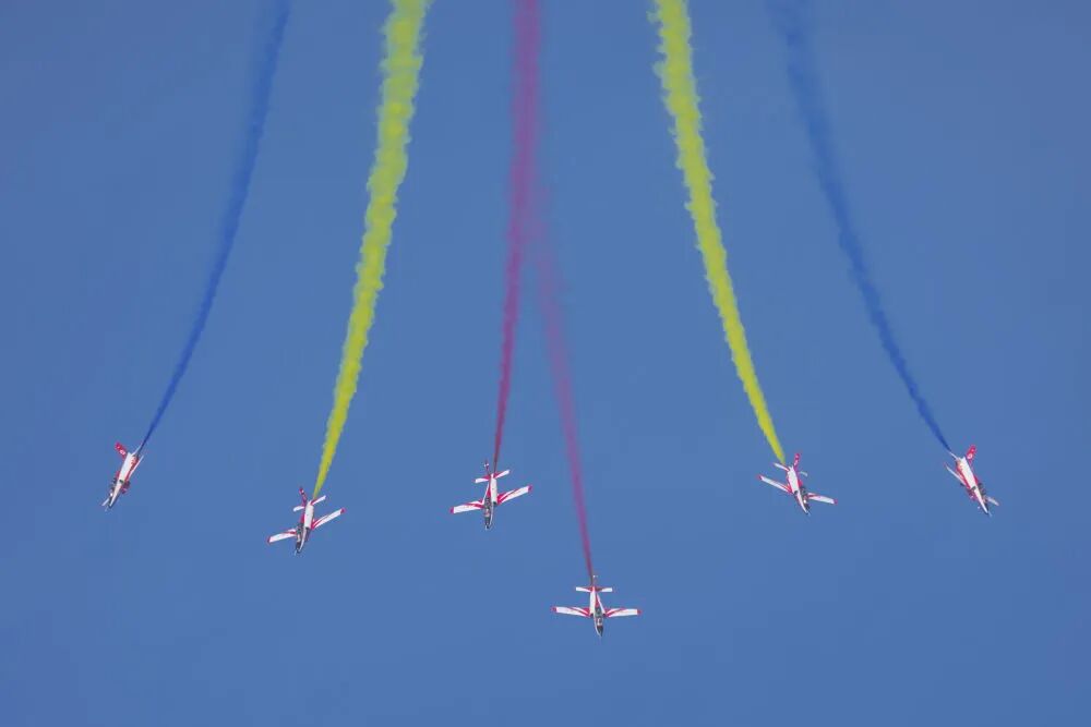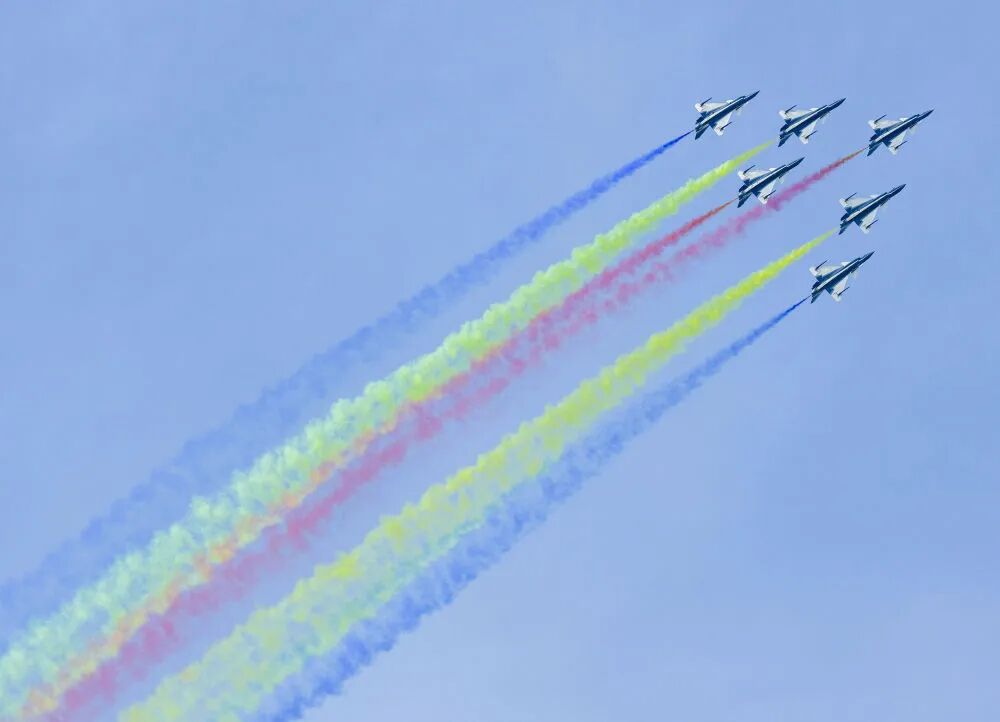 9月19日,空軍八一飛行表演隊進行飛行表演。新華社記者 顏麟藴 攝